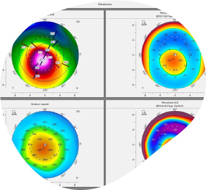 In patients, the cornea gradually becomes thinner over time, resulting in characteristic bulging. In the early stages of the disease, despite the best efforts of ophthalmologists, it is difficult to detect the condition in most standard-equipped offices. To confirm or rule out corneal disease, it is worth scheduling an appointment or taking someone with disturbing symptoms for the appropriate examination. During such an examination, corneal maps must be performed using high-specialized diagnostic equipment. Corneal examinations are also performed using a slit lamp. Such examinations are also conducted in our facility. If you are experiencing these symptoms, do not hesitate to see a specialist as soon as possible, who will perform the necessary examinations and implement appropriate treatment.